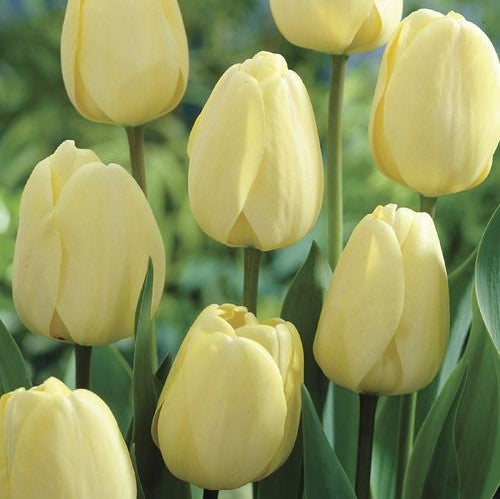 Il tulipano Ivory Floradale, con il suo portamento eretto e la fioritura generosa, illumina i giardini di primavera con toni avorio purissimi che catturano la luce del sole e la diffondono in riflessi morbidi e caldi. Le corolle, ampie e dalla forma classica, si aprono gradualmente rivelando una perfetta simmetria e un’eleganza senza tempo, valorizzata dal contrasto con il fogliame verde intenso e lanceolato. La varietà si distingue per l’ottima uniformità di altezza e la resistenza al vento, qualità che la rendono adatta anche alle zone esposte.