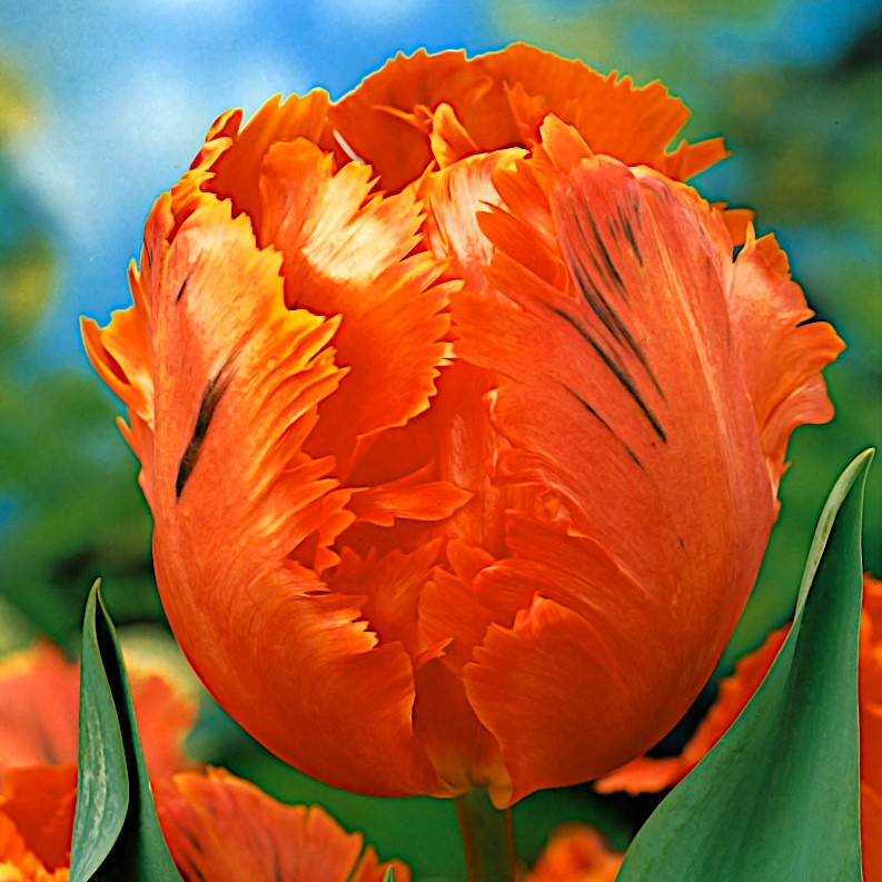 Il tulipano Orange Favourite cattura immediatamente lo sguardo con la sua straordinaria fioritura primaverile, in cui corolle ampie e dalla texture vellutata si accendono di un arancio saturo, armoniosamente sfumato da tocchi dorati e ramati. Questa combinazione cromatica, rara e luminosa, crea contrasti vividi con il verde intenso del fogliame lineare, rendendolo protagonista sia in giardini formali sia in spazi naturali. La varietà si inserisce tra le selezioni a fioritura tardiva, regalando un colpo di scena nei mesi di aprile e maggio, quando molte specie primaverili stanno già declinando e il giardino necessita di nuova energia visiva e strutturale.