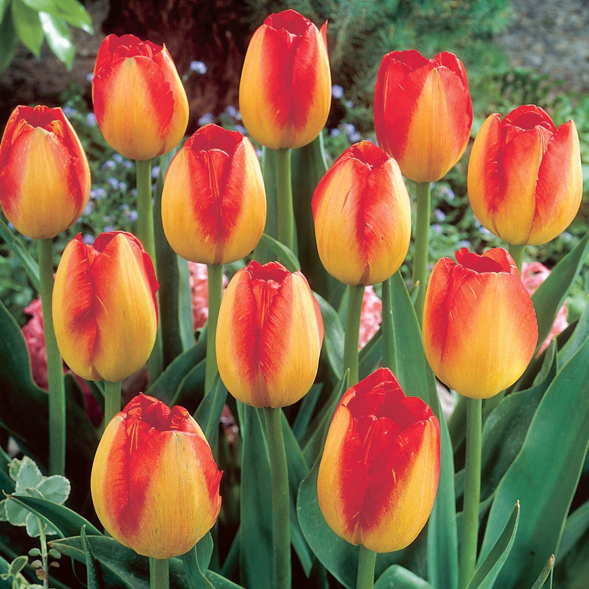 Raggiunge un’altezza media di 30-40 cm con steli robusti che mantengono i fiori ben eretti anche in presenza di vento moderato. Le foglie nastriformi, verde grigiastro, formano una base morbida e ordinata che incornicia la fioritura senza sottrarle protagonismo. La peculiarità del tulipano Prins Claus sta nella capacità di conservare la vividezza delle sfumature anche in pieno sole, caratteristica apprezzata dai coltivatori professionali e dagli amatori per la resa costante. In vaso come in piena terra mantiene proporzioni equilibrate, evitando eccessi di sviluppo fogliare che potrebbero ridurre l’impatto visivo del fiore.