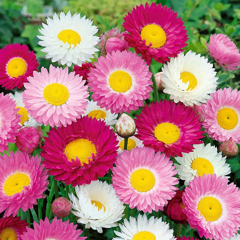 Scopri la bellezza e la magia dell'Acroclinium, scientificamente noto come Helipterum roseum. Questa pianta annuale offre una fioritura abbondante e duratura, rendendola una perfetta aggiunta per bordure, fiori recisi e mazzi secchi. Crescendo fino a 40-50 centimetri di altezza, l'Acroclinium sfoggia fiori larghi, doppi o semi-doppi, che variano dal bianco a diverse sfumature di rosa, creando un affascinante spettacolo di colori nel tuo giardino.
