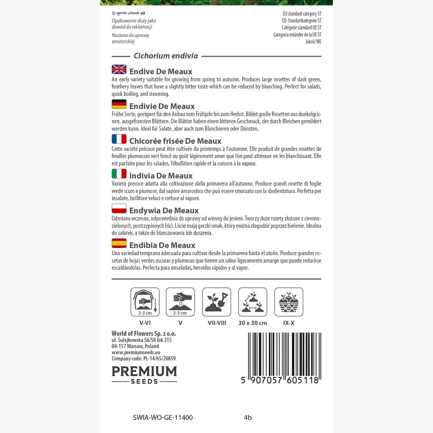 L’indivia De Meaux è una varietà precoce che si distingue per la sua rusticità e per la generosità della produzione. Appartenente alla specie Cichorium endivia, questa selezione è particolarmente apprezzata dagli orticoltori per la robustezza delle sue grandi rosette di foglie verde scuro, finemente piumose e dal caratteristico sapore amarostico. La struttura compatta e la crescita vigorosa la rendono ideale per la coltivazione dalla primavera fino all’inizio dell’autunno, offrendo un raccolto abbondante e di qualità.