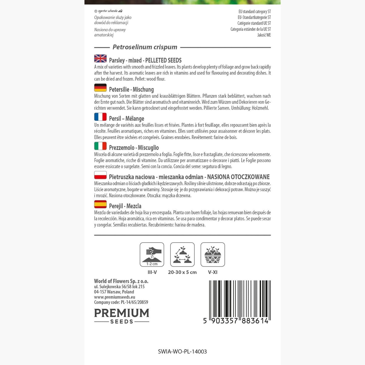 La semina del Petroselinum crispum è semplice e gratificante. Per ottenere i migliori risultati, semina i semi in pieno campo tra i mesi di marzo e maggio. Assicurati che il terreno sia adeguatamente preparato prima della semina, con una profondità consigliata di 1-2 cm. La distanza di semina raccomandata è di 20-30 cm tra le file e 5 cm tra le piante, garantendo così una circolazione d'aria ottimale e una corretta esposizione al sole.