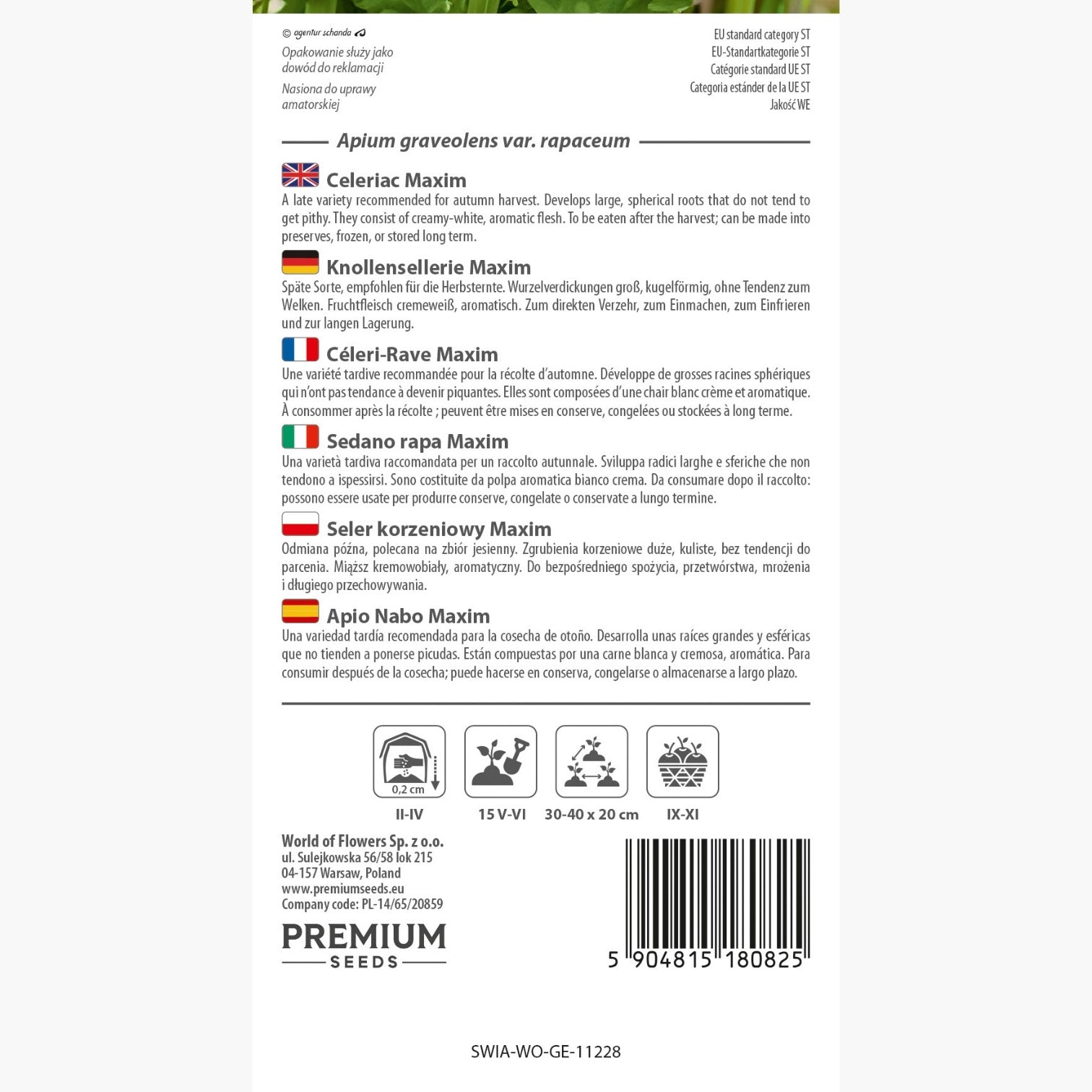 Sedano rapa Maxim - Raccolto tardivo, polpa aromatica e tenera, resistente