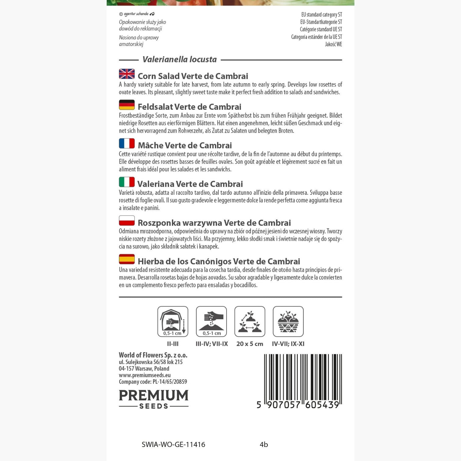 La valeriana - verte de Cambrai è una varietà robusta e apprezzata dagli appassionati di orticoltura per la sua capacità di resistere anche ai primi freddi autunnali e ai ritorni di freddo primaverile. Valerianella locusta si distingue per le sue rosette compatte di foglie ovali, dal colore verde intenso e dalla consistenza tenera, ideali per arricchire insalate o panini con un tocco fresco e delicato.
