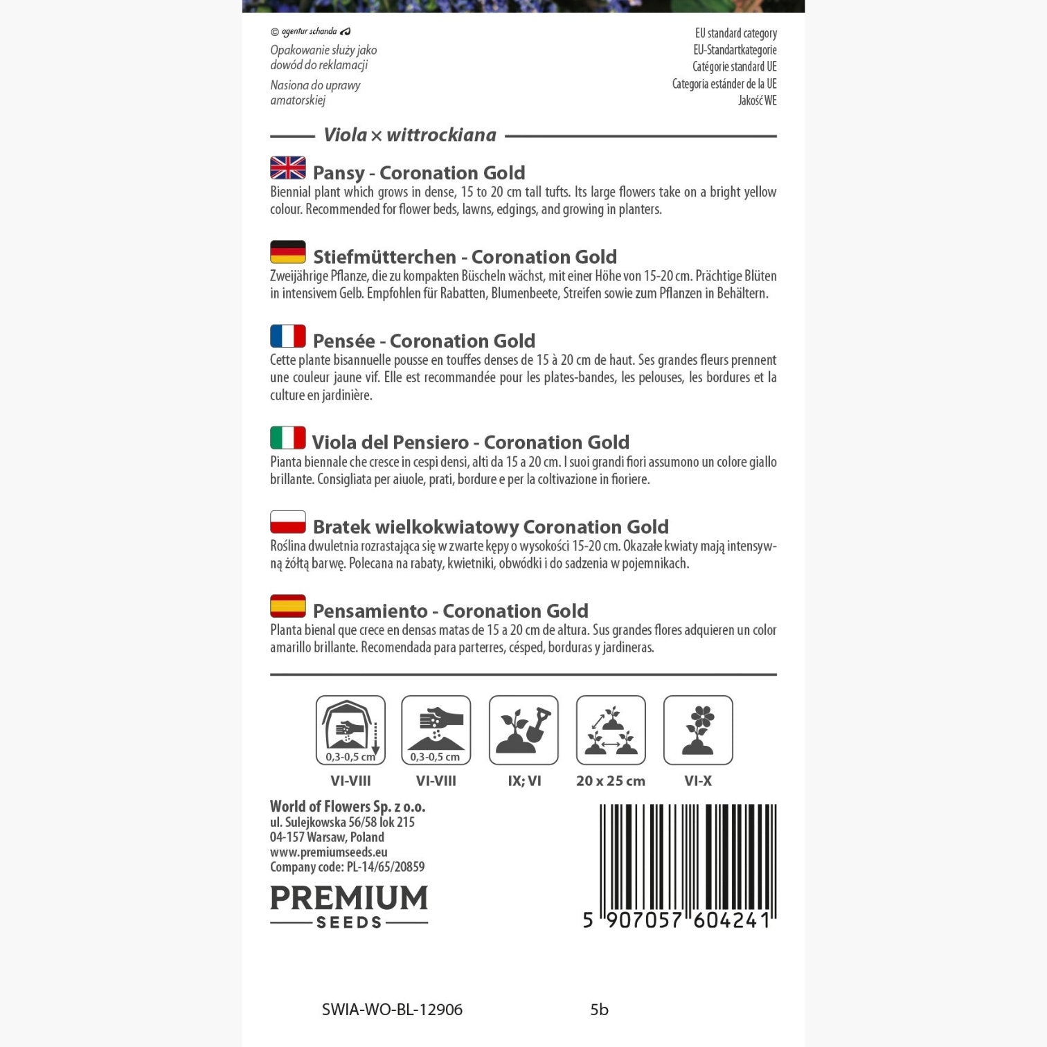 Semi ben confezionati e germinazione uniforme; le piantine di Viola Coronation Gold sono vigorose e il giallo brillante dona alle aiuole un aspetto curato e piacevole.