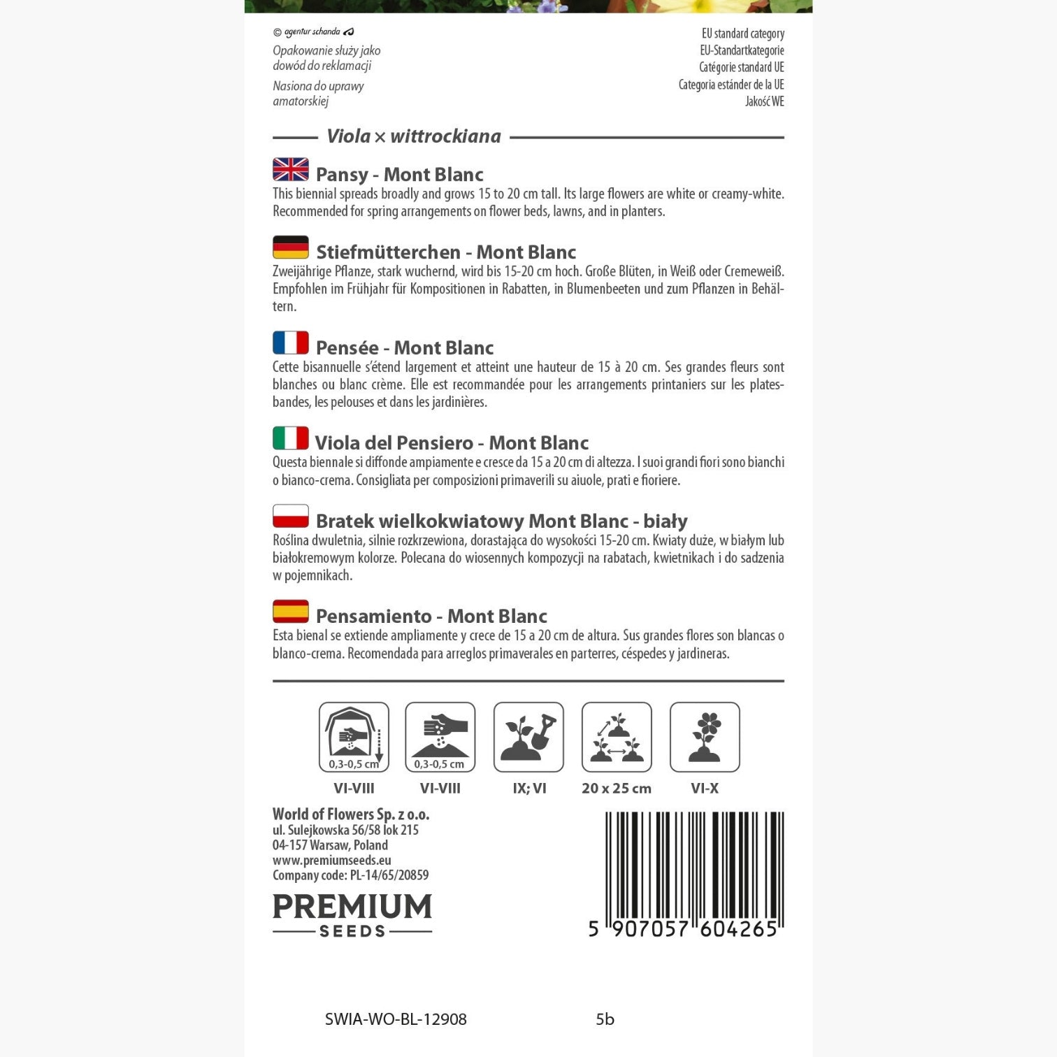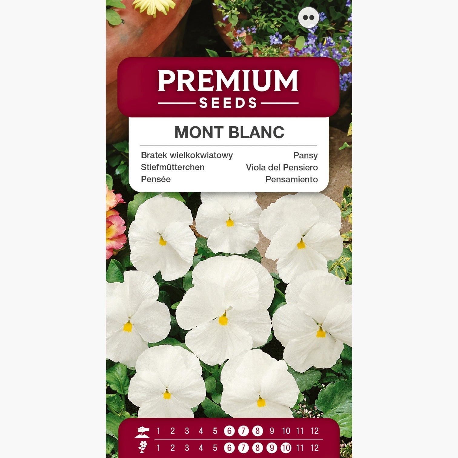 La viola del pensiero - Mont Blanc è una varietà dal fascino intramontabile, apprezzata per i suoi grandi fiori dal colore bianco puro o in delicate sfumature crema. Questa specie, appartenente alla Viola ×wittrockiana, è ideale per abbellire aiuole, prati e fioriere primaverili, regalando una fioritura elegante e luminosa che attira immediatamente lo sguardo.