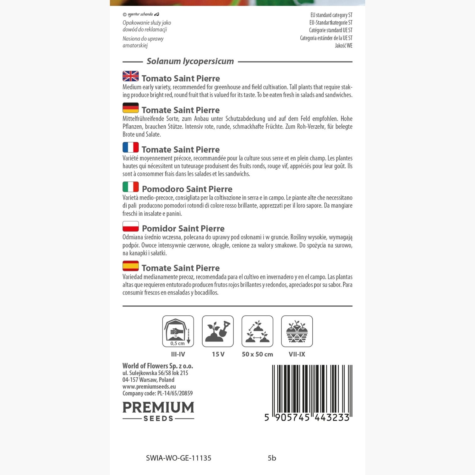 Il Pomodoro Saint Pierre (Solanum lycopersicum) è una varietà medio-precoce, ideale per gli appassionati di giardinaggio che desiderano coltivare pomodori di altissima qualità sia in serra che in campo aperto. Questa varietà si distingue per la sua elevata capacità di produzione e per l'eccezionale sapore dei frutti, perfetti da gustare freschi in insalate e panini.