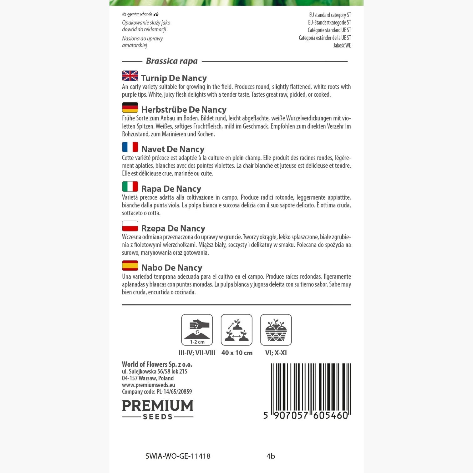 La rapa de Nancy, conosciuta anche come Brassica rapa, è una varietà precoce molto apprezzata per la sua capacità di adattarsi alla coltivazione in pieno campo. Queste piante sviluppano radici tonde, leggermente appiattite, con una caratteristica colorazione: bianche con la punta viola. La polpa, bianca e croccante, offre un sapore delicato che conquista sia al naturale sia in cucina.