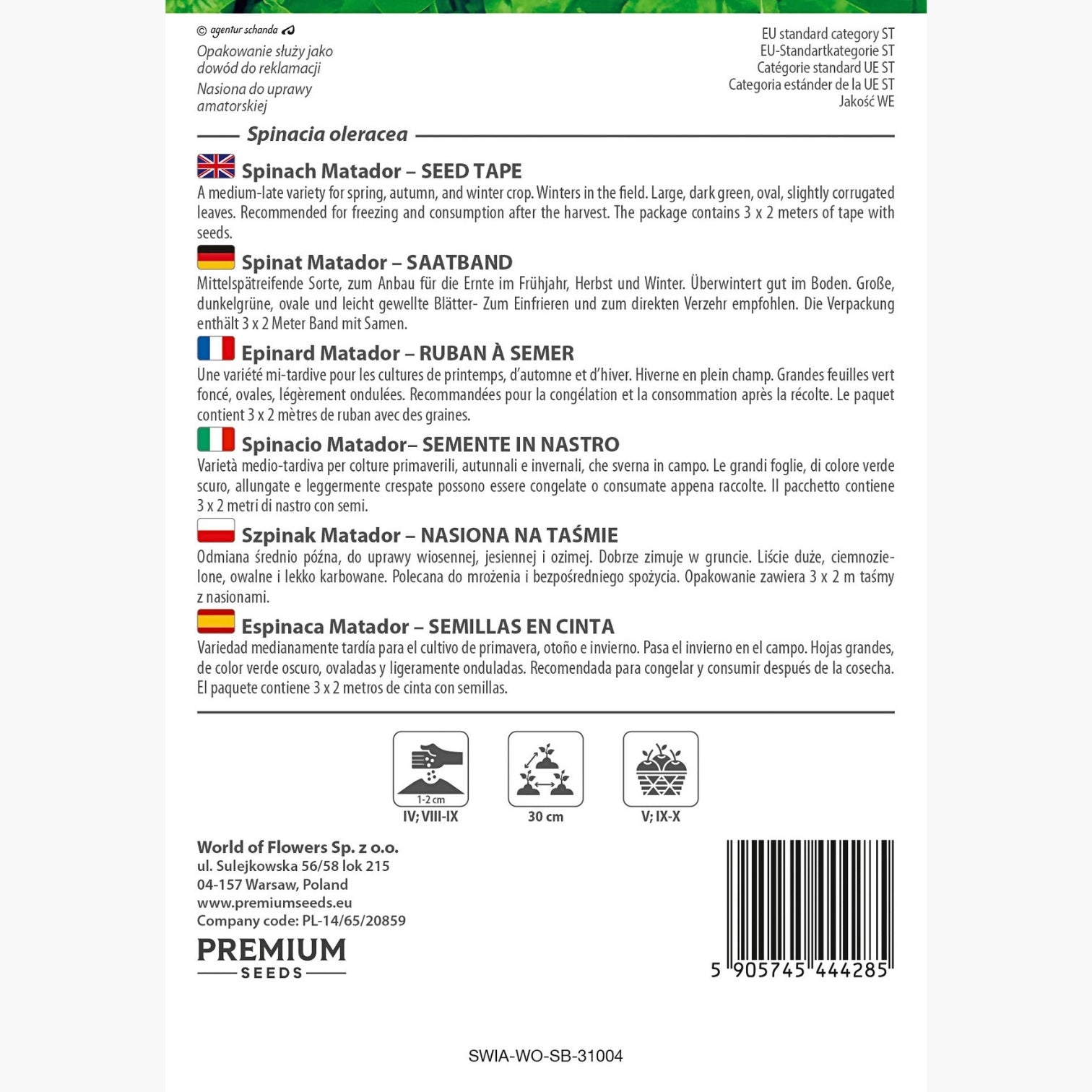 Spinacio matador (Spinacia oleracea) è una varietà medio-tardiva, apprezzata dagli appassionati dell’orto per la sua grande produttività e versatilità in cucina. Questa specie si distingue per le sue foglie ampie di un intenso verde scuro, leggermente allungate e delicatamente crespate, ideali sia per il consumo fresco sia per essere congelate dopo la raccolta. Il nastro preseminato facilita la distribuzione dei semi, rendendo la semina particolarmente semplice ed evitando sprechi, anche per chi è alle prime esperienze.