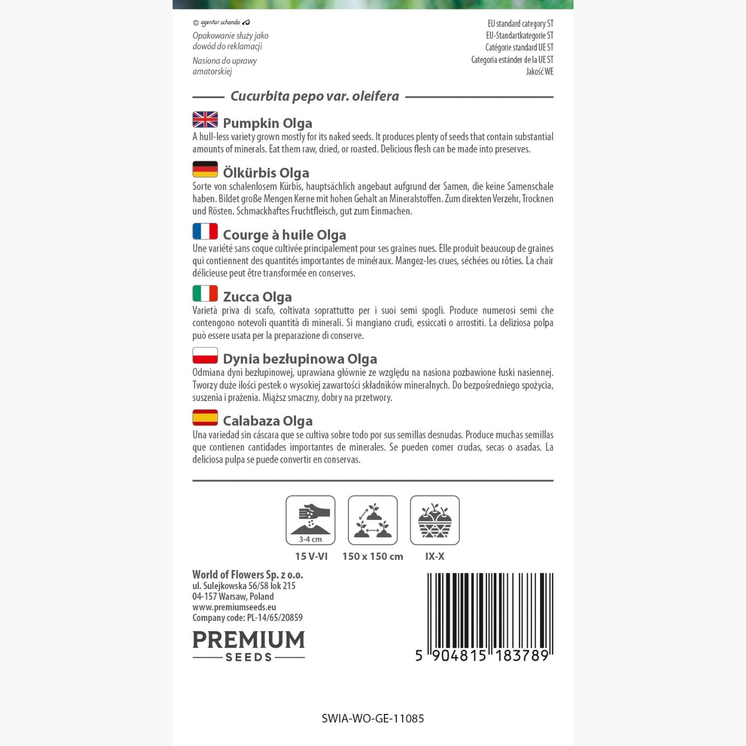 Per garantire uno sviluppo sano e vigoroso alle piante, si consiglia di mantenere una distanza di 150 cm sia tra le file sia tra le buche. Questo sesto d’impianto consente una buona aerazione e un’ottimale esposizione alla luce, prevenendo le principali patologie fungine e assicurando frutti di qualità superiore. La raccolta si effettua tra settembre e ottobre, quando le zucche raggiungono la piena maturazione: il momento ideale per ottenere semi ricchi di principi nutritivi e una polpa compatta e saporita.