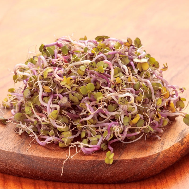 Il ravanello China Rose (Raphanus sativus) è una varietà particolarmente apprezzata per i suoi germogli dal portamento elegante: steli rosa intenso e foglie verde scuro che donano vivacità e colore a ogni piatto. Il sapore unico, sapido con una piacevole nota dolce, li rende ideali per arricchire panini, insalate, salse e per decorare piatti caldi e freddi con un tocco raffinato.