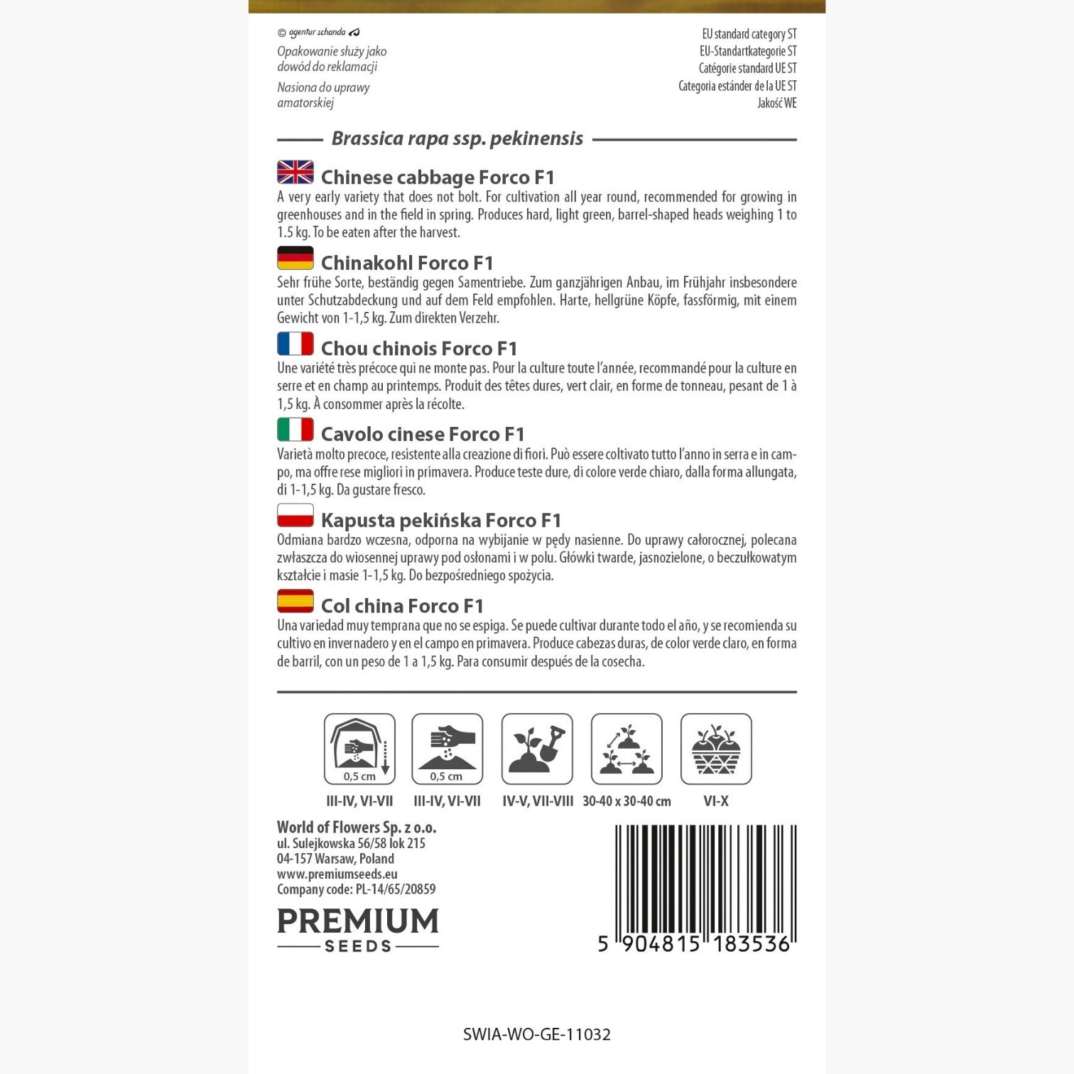 Caratterizzato da un ciclo particolarmente precoce e da un’elevata resistenza alla formazione di fiori, il cavolo cinese Forco F1 si distingue tra le varietà destinate all’orto per la sua affidabilità e produttività. Questa selezione di Brassica rapa ssp. pekinensis è apprezzata sia dagli orticoltori esperti sia da chi si sta avvicinando alla coltivazione di ortaggi asiatici: le sue teste compatte e di colore verde chiaro, dalla forma elegante e allungata, raggiungono facilmente il peso di 1-1,5 kg.