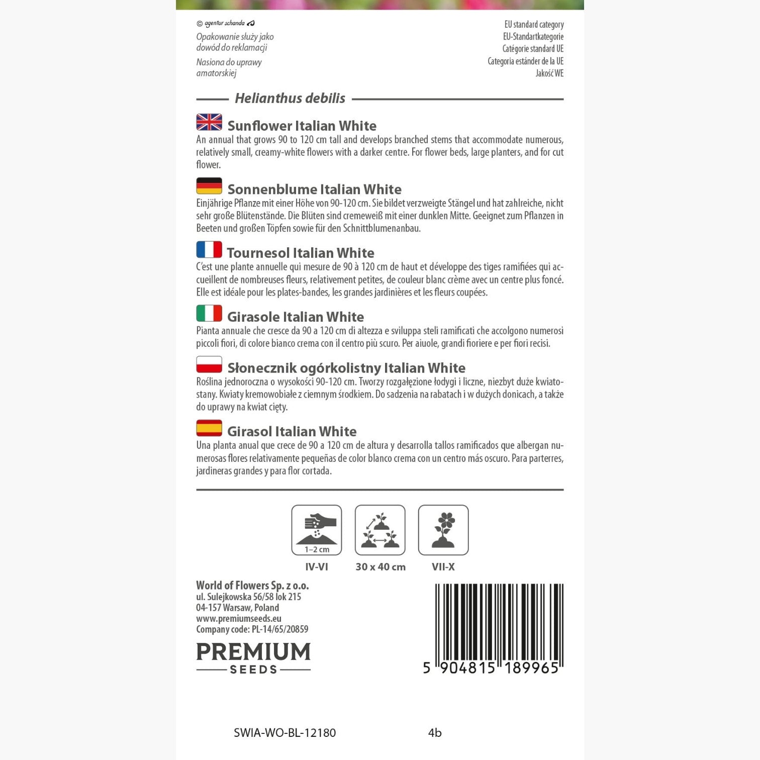 Il Girasole Italian White, quindi, è un'opzione ideale per gli appassionati di giardinaggio che desiderano aggiungere un tocco di raffinatezza e bellezza naturale ai loro spazi verdi. La cura e l'attenzione ai dettagli nella coltivazione rendono questo fiore una scelta eccellente per chi vuole godere di fioriture durature e affascinanti durante la stagione estiva e autunnale.