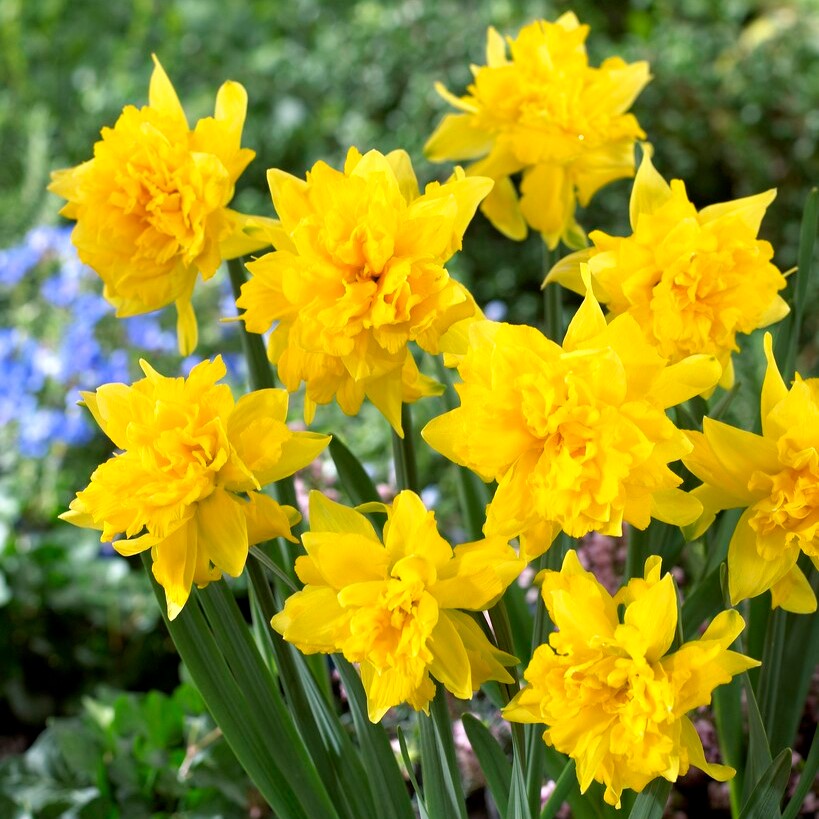 Il narciso Van Sion si apre in primavera con fiori doppi dal fascino intramontabile, richiamo vivo ai giardini d’epoca e alle bordure fiorite di campagna. Le sue corolle, composte da numerosi petali arruffati, variano dal giallo intenso a sfumature più calde tendenti all’oro, talvolta velate di verde nella fase iniziale della fioritura. Questa ricchezza di forme e tonalità, unita a un portamento ordinato e compatto alto 25-35 cm, lo rende protagonista sia come elemento isolato sia in macchie dense, perfetto per chi desidera un effetto scenografico ma naturale.