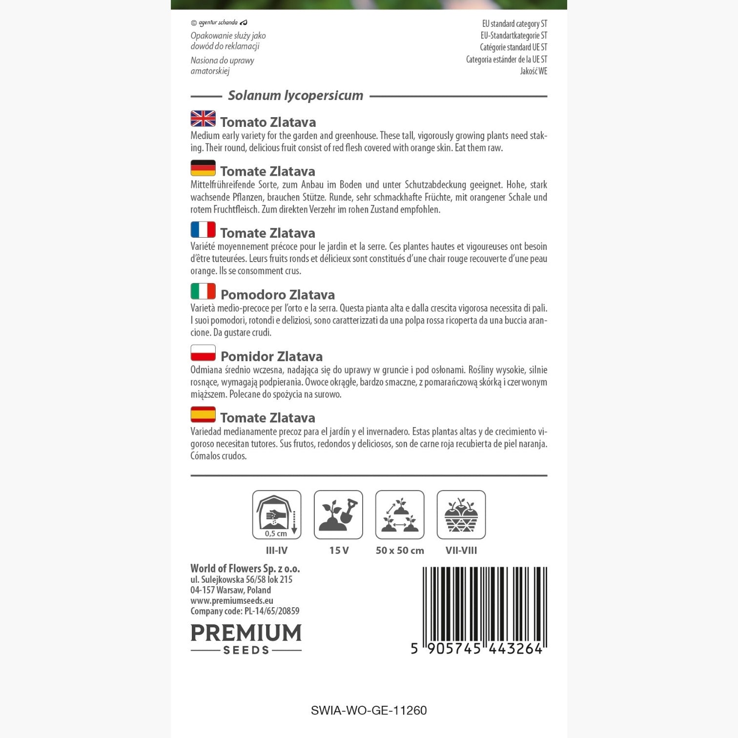 Per ottenere i migliori risultati, è fondamentale piantare i semi del pomodoro Zlatava alla profondità raccomandata di 0,5 cm. Questa misura assicura una germinazione efficace e una pianta robusta. La distanza di semina consigliata è di 50 x 50 cm, che permette una circolazione d'aria adeguata e una corretta esposizione al sole, due fattori essenziali per la salute della pianta.
