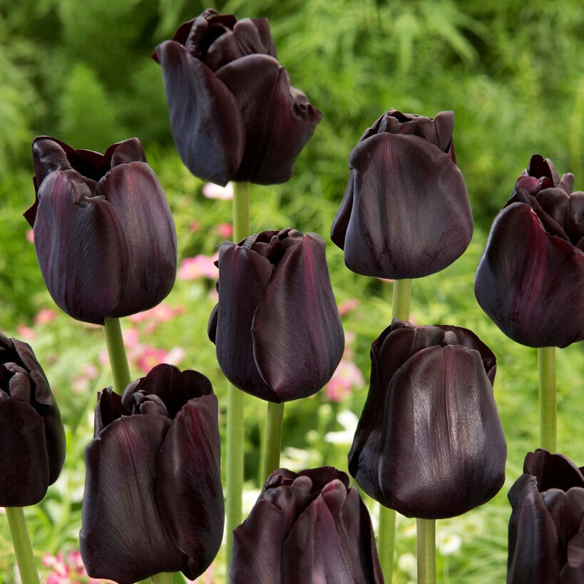 Il tulipano Paul Scherer incanta fin dal primo sguardo con la sua fioritura profonda quasi nera, velata da riflessi porpora che emergono alla luce primaverile. La silhouette slanciata e l’eleganza del portamento lo rendono ideale per incuriosire e attrarre l’osservatore già da lontano. In giardino, il contrasto tra i petali vellutati e il verde brillante del fogliame crea una scenografia raffinata, capace di esaltare bordure, macchie fiorite e composizioni stagionali anche di carattere contemporaneo. Apprezzato nei cataloghi dei vivai più autorevoli per l’intensità del colore, è considerato un punto focale naturale nelle aiuole formali e nei giardini a contrasto cromatico.