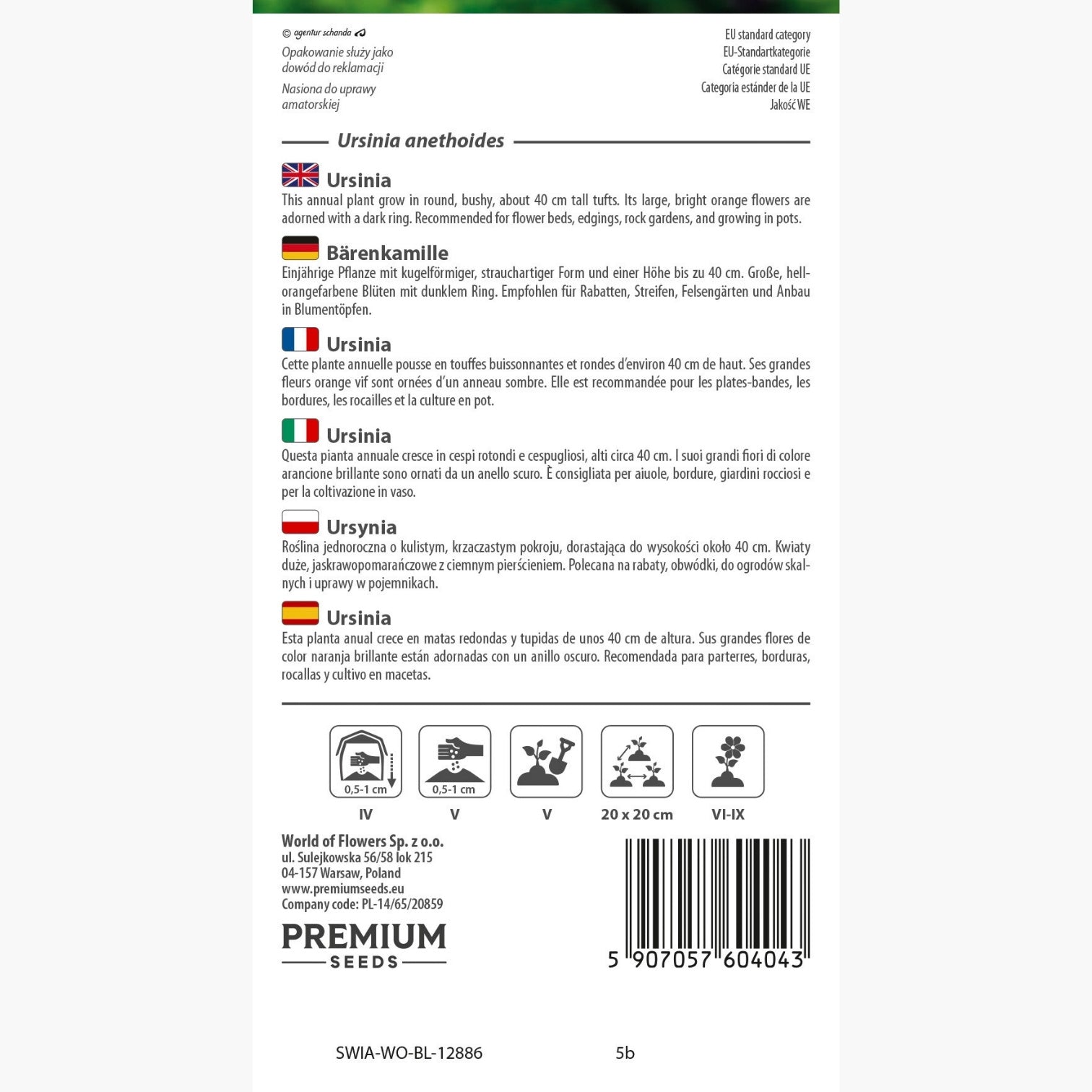 Semi sani e piantine di ursinia compatte e vivaci