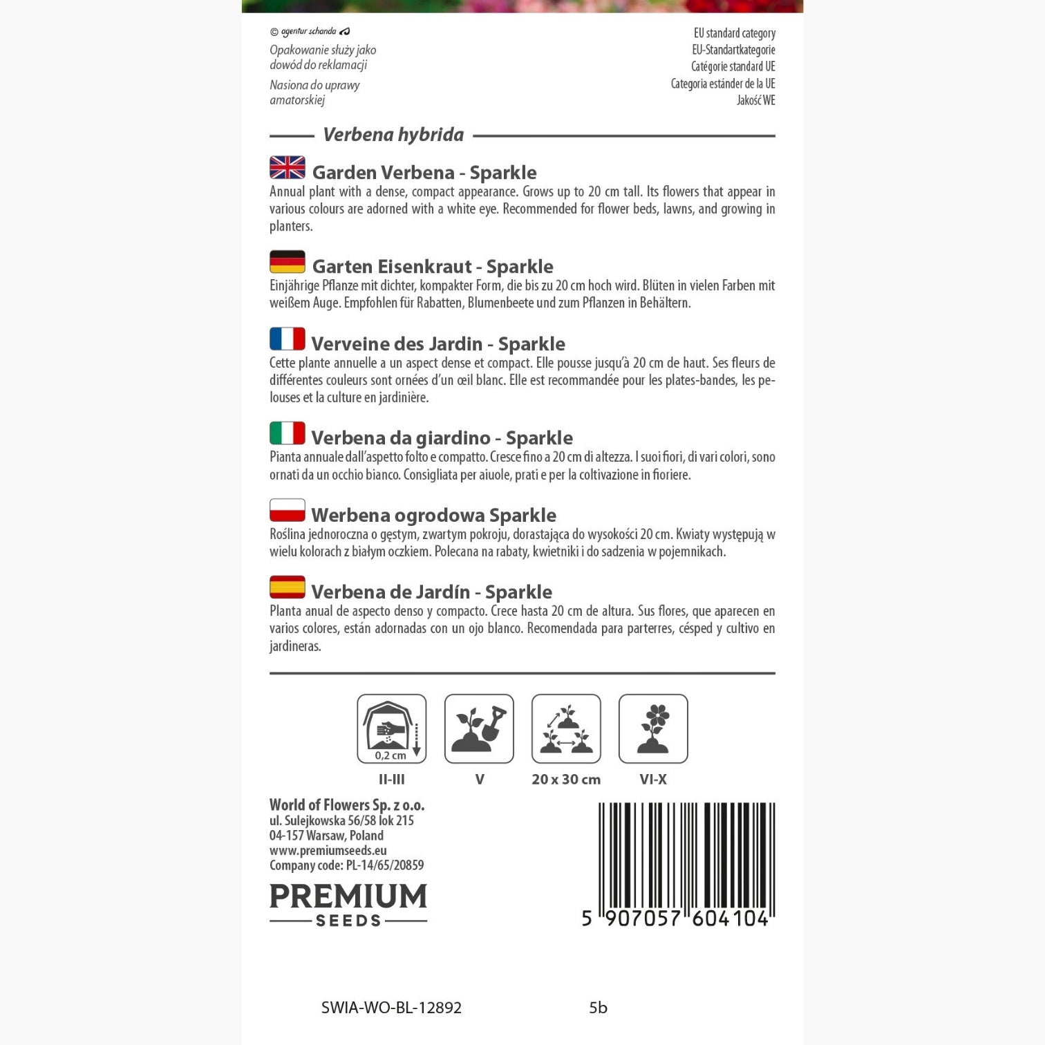 La verbena da giardino - Sparkle è una delle annuali più apprezzate da chi desidera un’esplosione di colore e vivacità nei propri spazi verdi. Questa varietà di Verbena hybrida si distingue per la sua crescita compatta e ordinata, che raggiunge circa 20 cm di altezza, e per i suoi fiori dai toni vivaci, ornati da un caratteristico occhio bianco centrale. Il suo portamento folto la rende ideale sia per abbellire aiuole e bordure, sia per arricchire vasi e fioriere su balconi e terrazze.