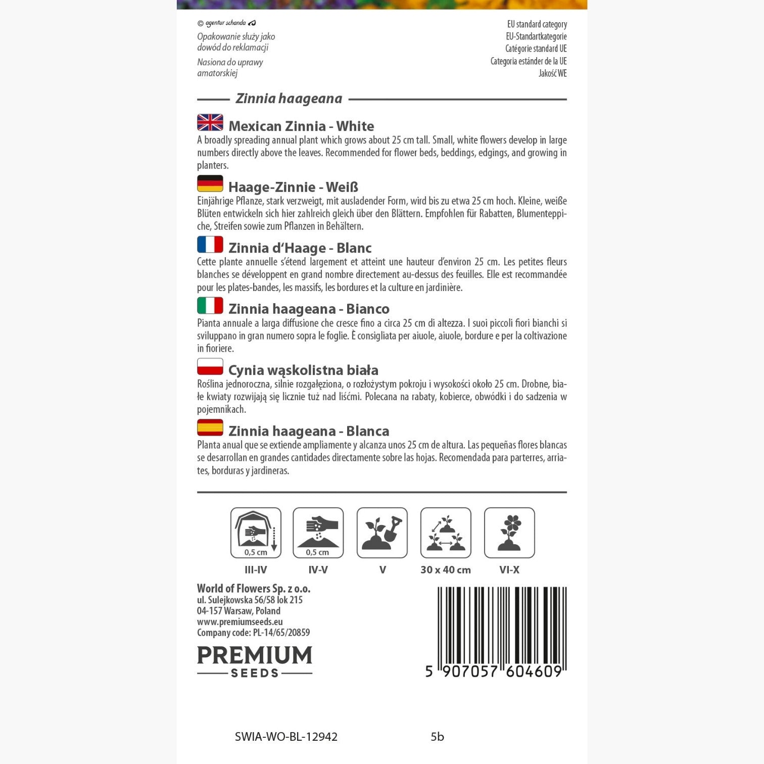 Sorgfältig verpackt erreichten mich die Samen in gutem Zustand, und im Beet zeigten sich bald kräftige Triebe. Die weißen Zinnien wirken hell und freundlich, besonders zwischen grünen Stauden. Lieferung über PremiumSeeds war zuverlässig; ich würde dort wieder bestellen.